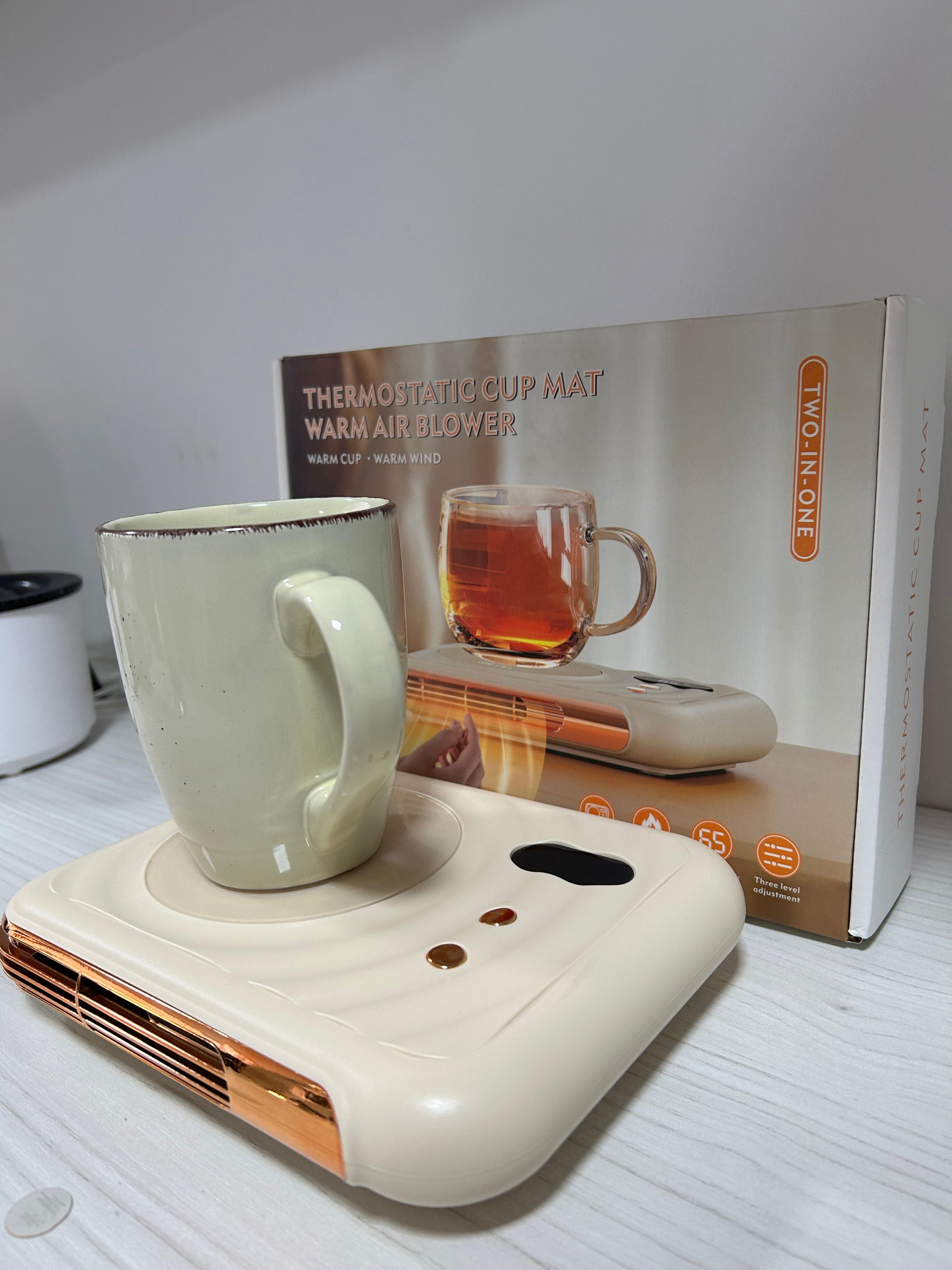 * 1 Almohadilla calentador de tazas con bebidas 2 en 1 soplador de aire caliente.
